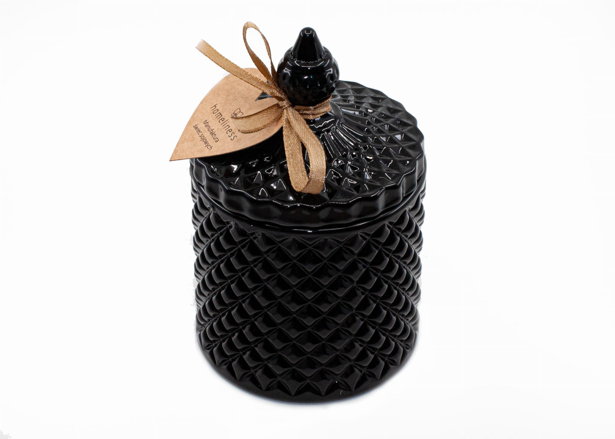 Świecznik szklany, czarny, ze szklaną pokrywką, po wypaleniu świecy szkło do ponownego użycia.