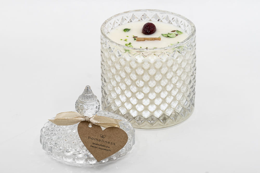 Ze względu na delikatność wosku sojowego, a także całkowicie rękodzielniczy charakter świec, możliwe jest wystąpienie malutkich pęcherzyków, lekkich nierówności czy sporadycznych pęknięć wosku. Absolutnie nie wpływa to negatywnie na jakość i wartość użytkową świecy. Dekoracja powierzchni świecy suszonymi kwiatami może się różnić od dekoracji na zdjęciu.